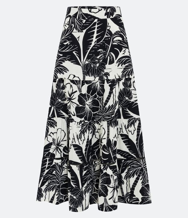 Nova saia midi em linho com estampa floral tropical branca/preta