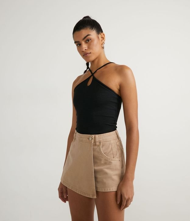 Blusa de gola cruzada preta texturizada da Blue Steel - Experimente o conforto incomparável, a qualidade excepcional e o estilo sem esforço a cada uso.