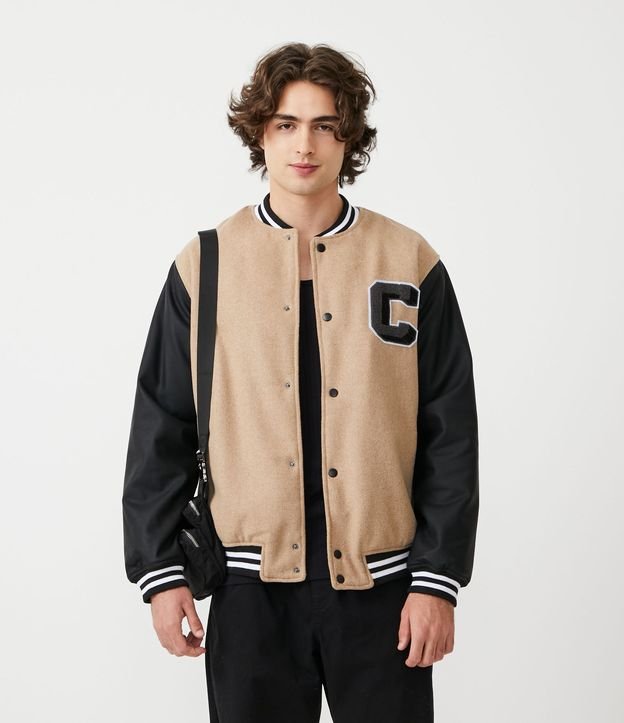Jaqueta de poliviscose com bolsos e estampa marrom