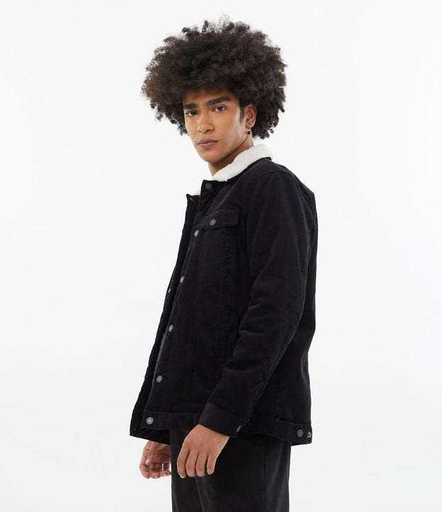 Jaqueta de veludo cotelê preta com forro de sherpa