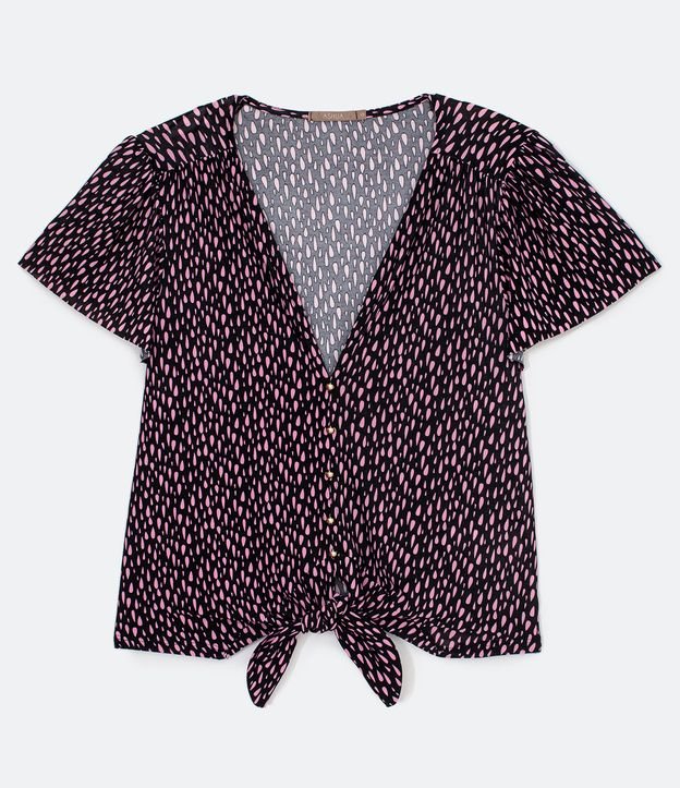 Blusa preta com bainha de amarrar e estampa de gotas - Curve e Plus Size