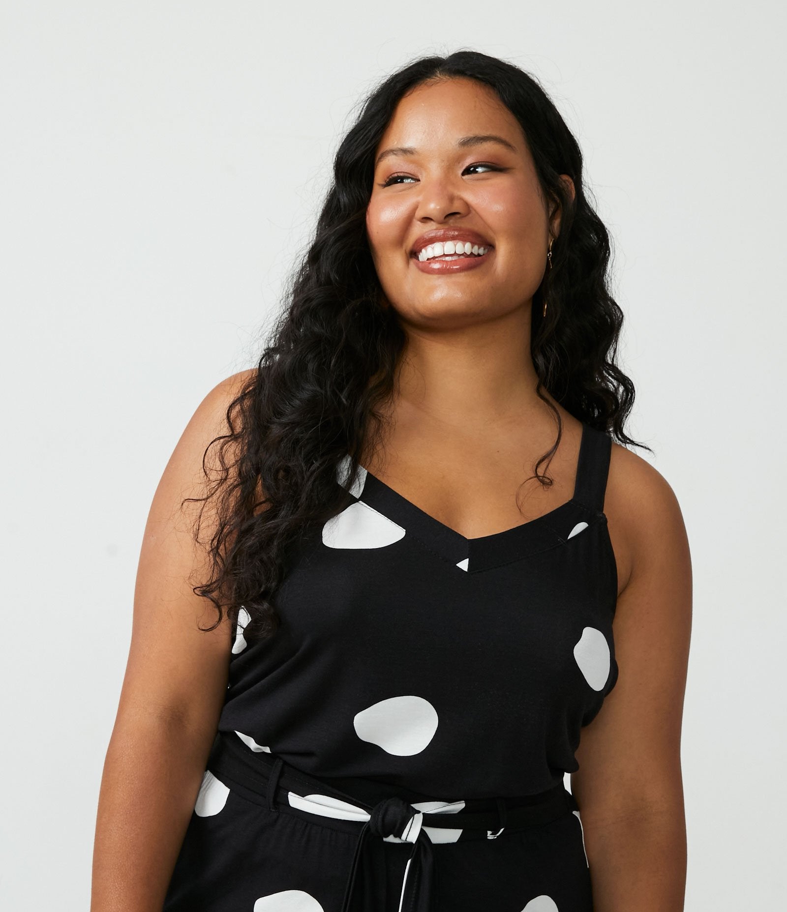 Top com alça de lycra de viscose com bolinhas pretas - Curve & Plus Size