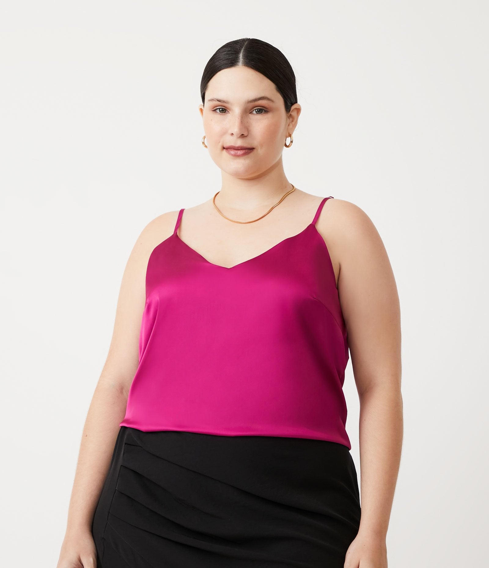 Blusa de cetim com alças ajustáveis Curve & Plus Size Pink