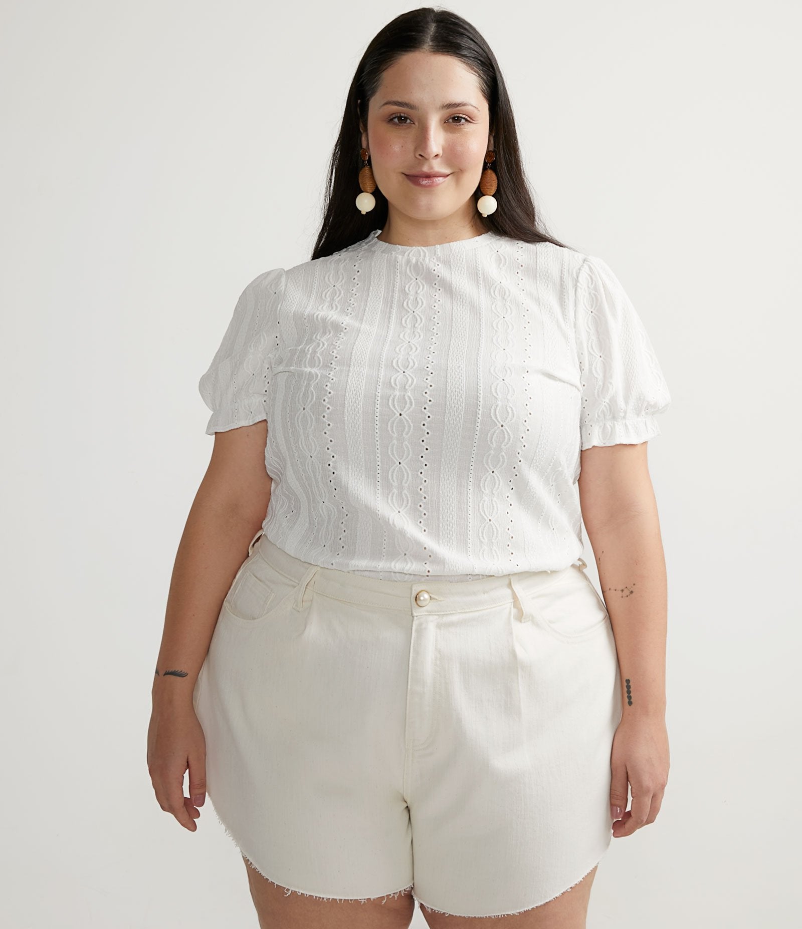 Blusa Laise branca com mangas curtas bufantes - Curve e Plus Size