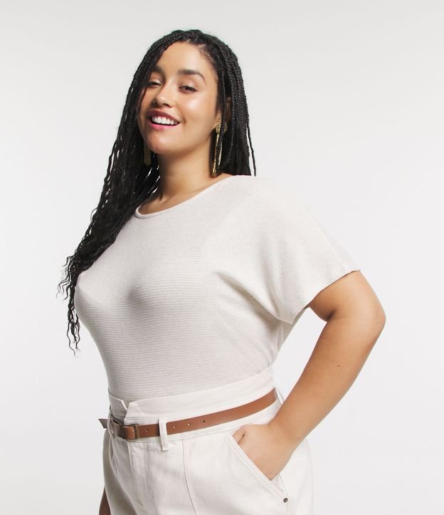 Blusa de manga curta off white em malha macia, Curve e Plus Size