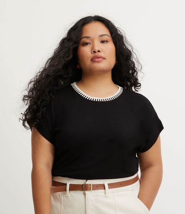 Blusa de crepe de viscose com gola contrastante, Curve & Plus Size, preta