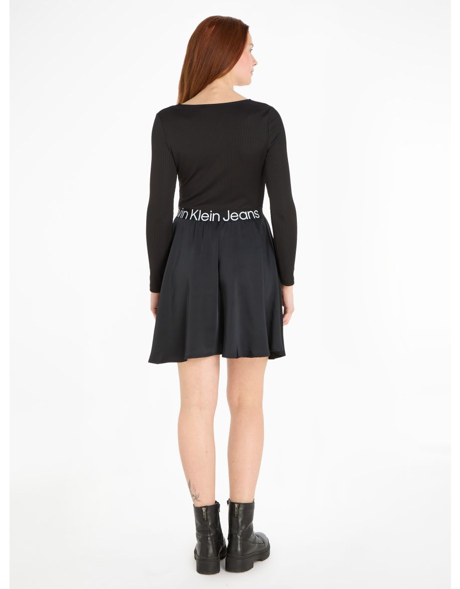 Vestido de manga longa com elástico com logotipo da Calvin Klein Jeans