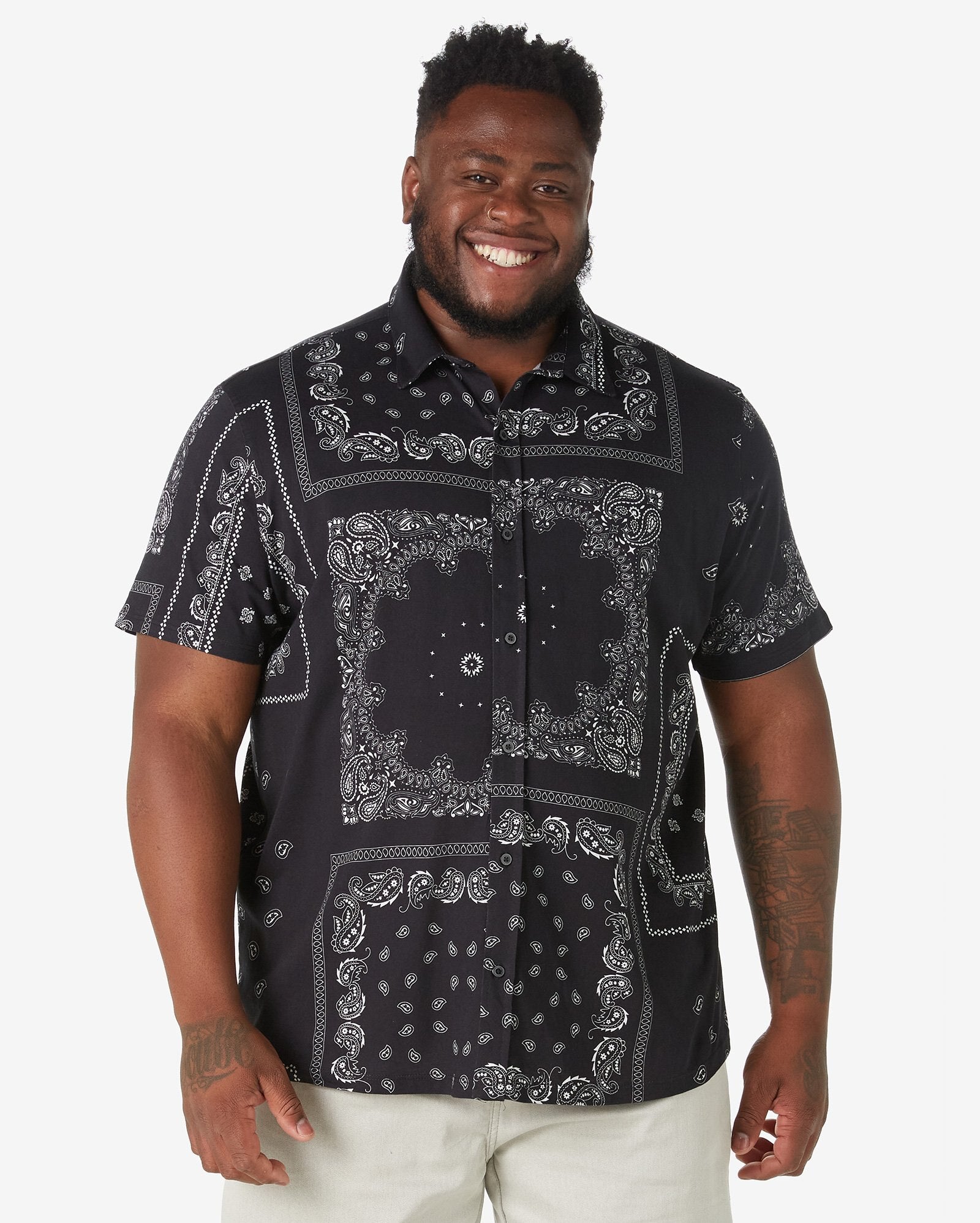 Camisa masculina de algodão Paisley de manga curta plus size em preto - Allman By Riachuelo