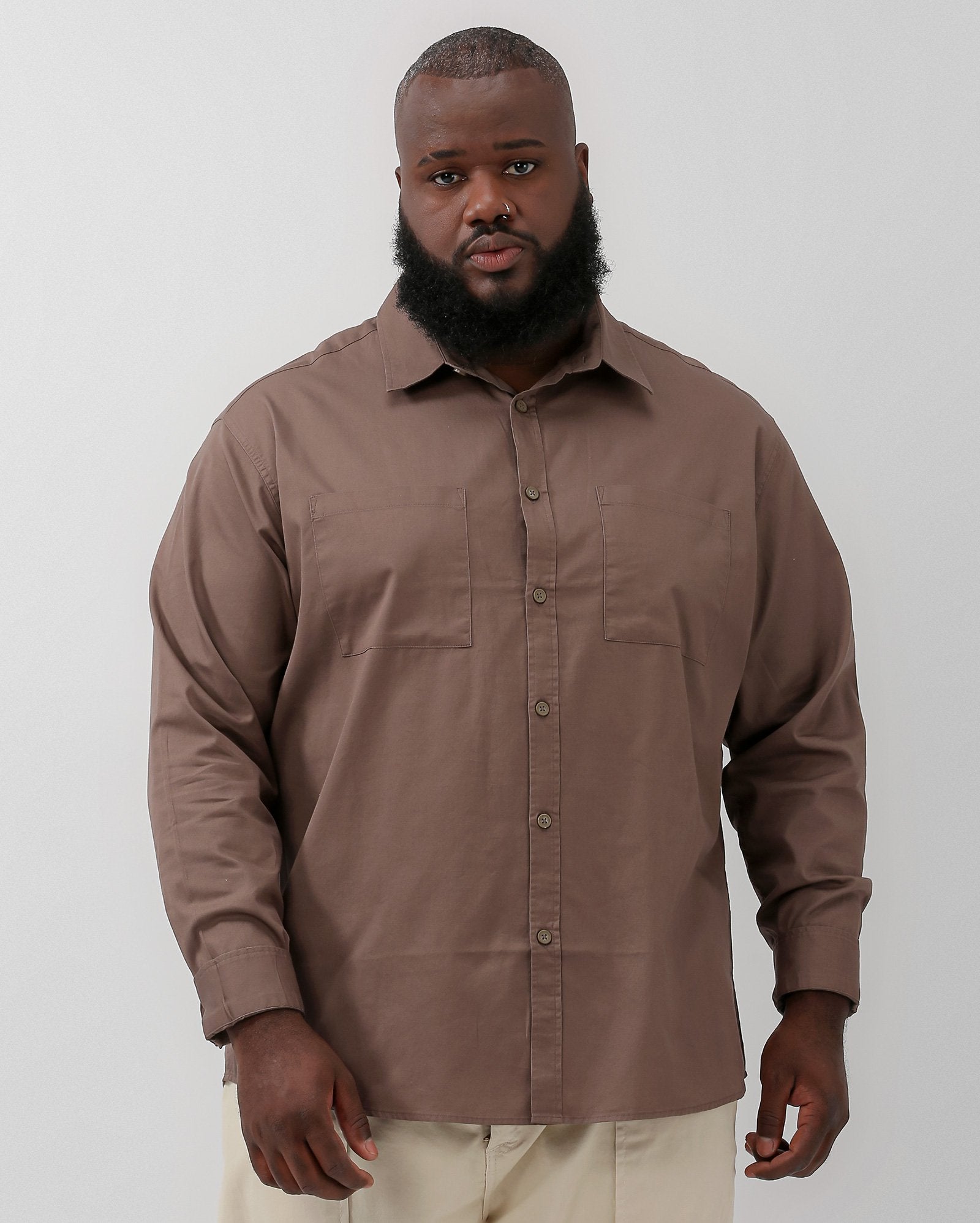 Camisa masculina de manga longa marrom plus size | Original Plus da Riachuelo