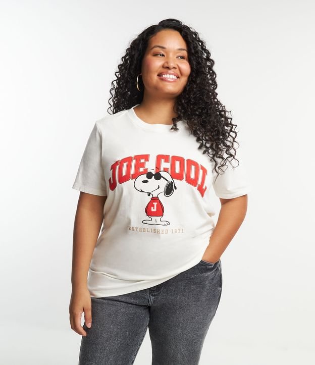 Camiseta de algodão com estampa do Snoopy, Curve e Plus Size, Off White