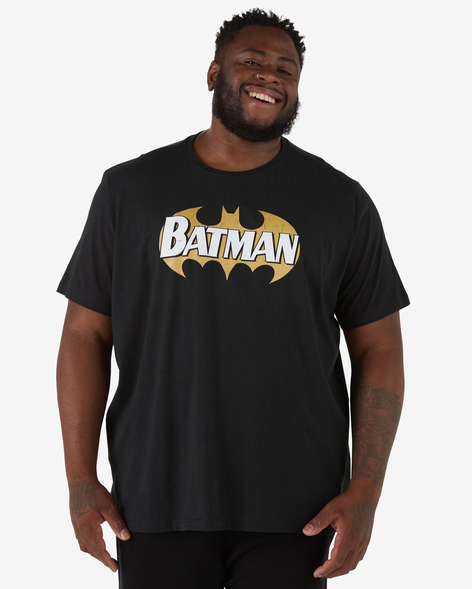 Camiseta masculina plus size de manga curta do Batman em preto