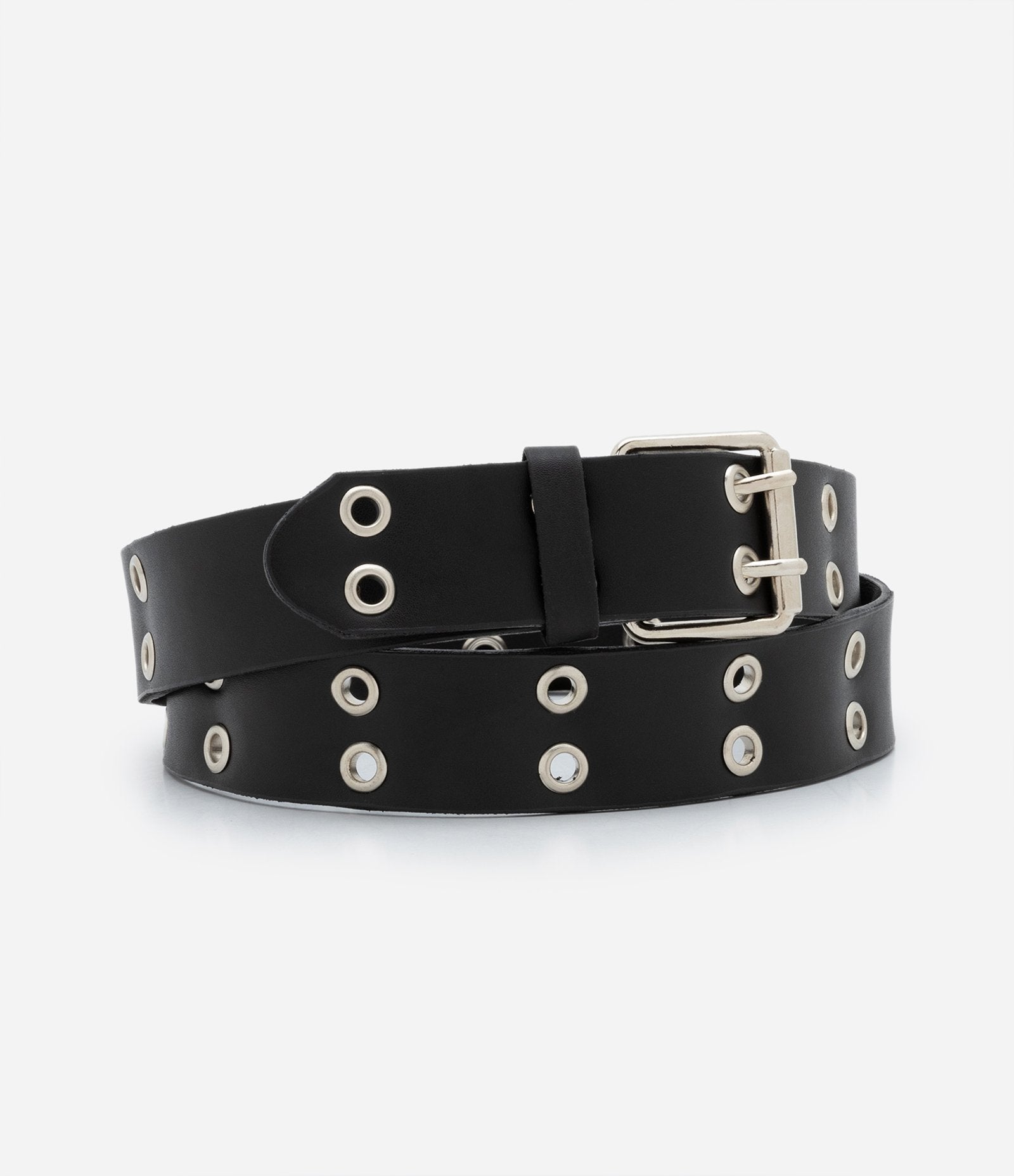 Cinto médio em material sintético liso com ilhós duplo, para curvas e tamanhos grandes, preto