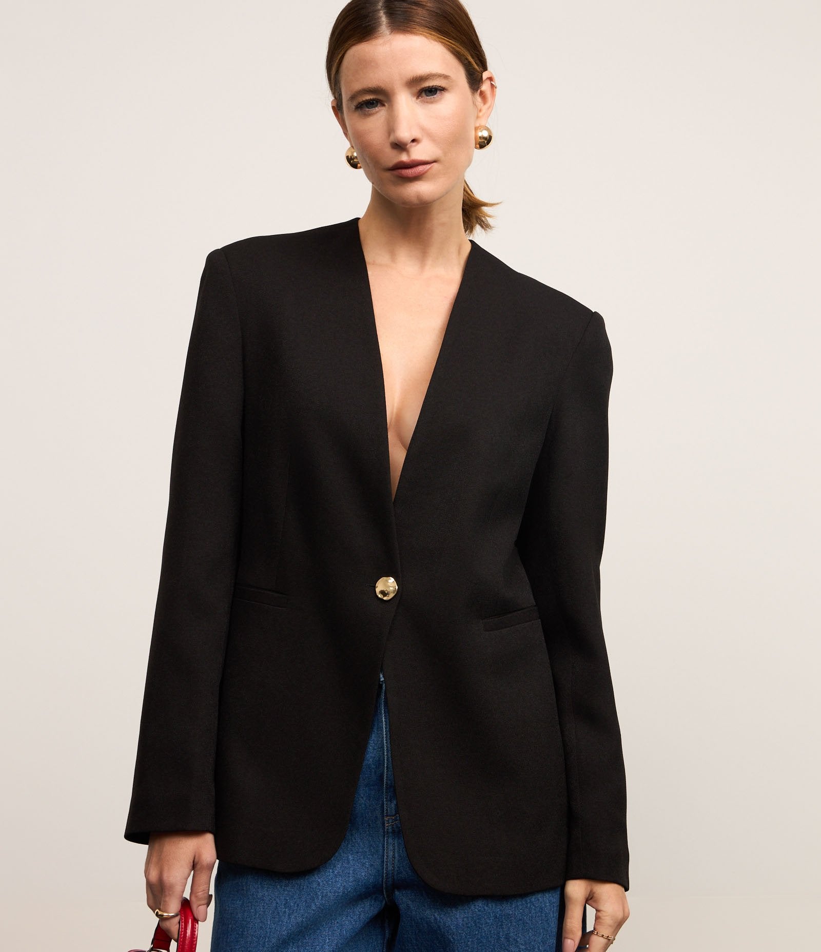 Blazer Slim Sob Medida Sem Lapela com Botões Únicos em Preto