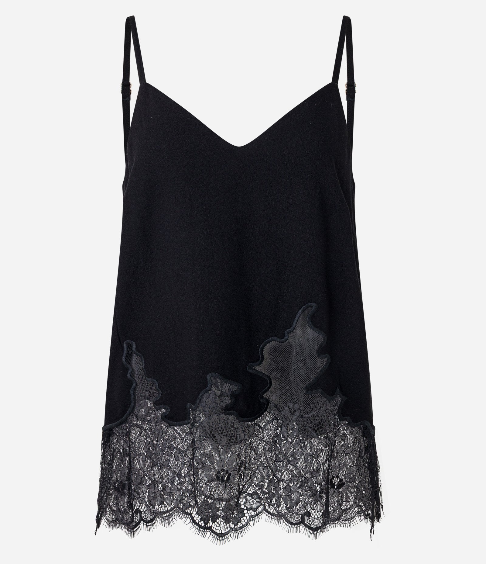 Blusa Boho de Crepe com Barra de Renda Floral em Preto