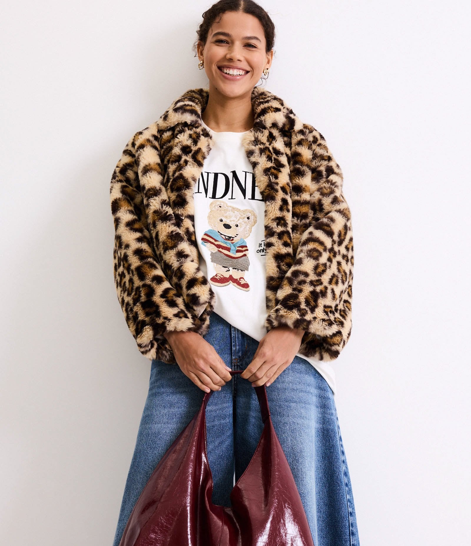 Casaco de Pele Sintética com Bolsos e Estampa de Onça Marrom