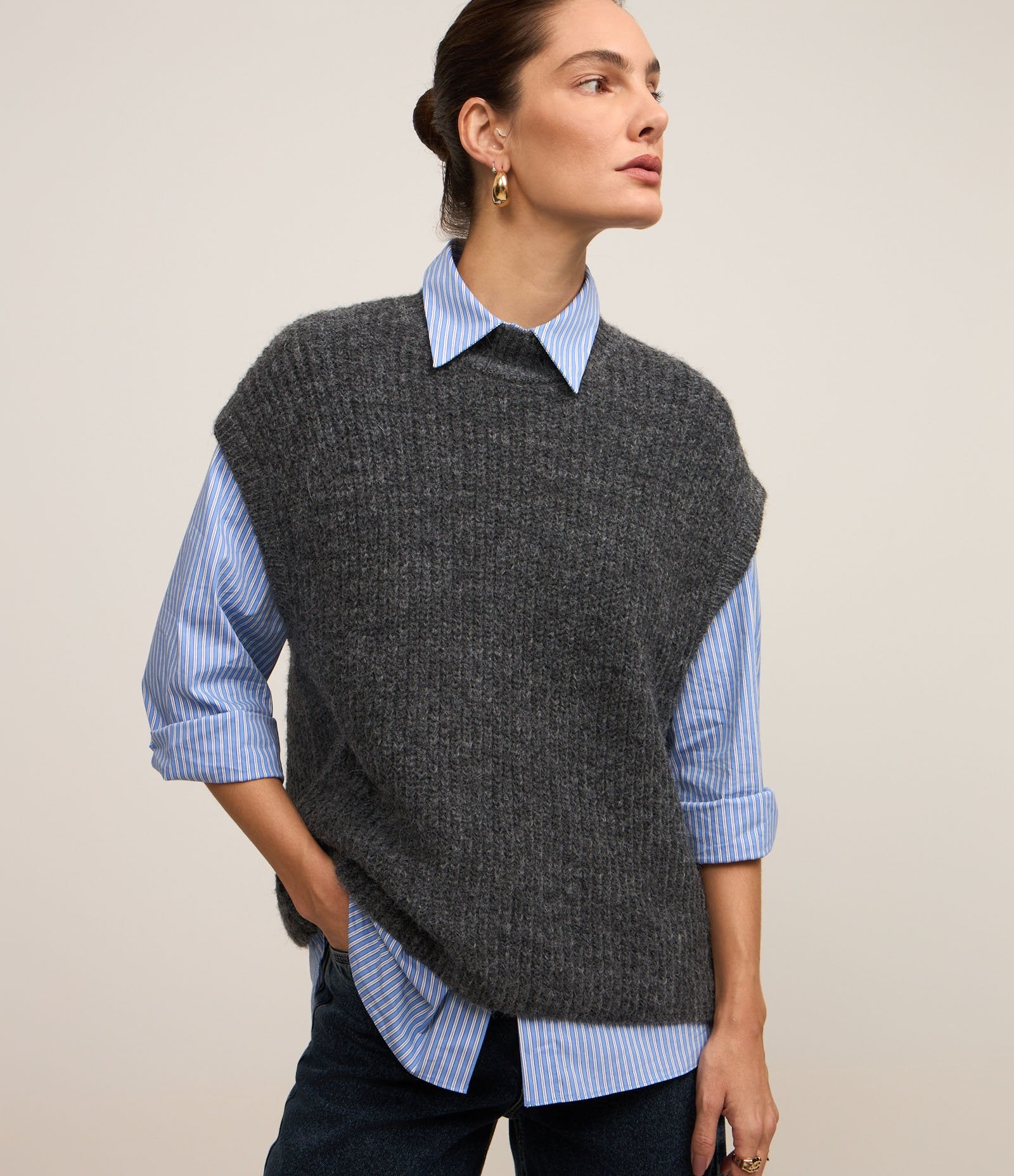 Colete de Tricô Texturizado com Drapeado Cinza Claro