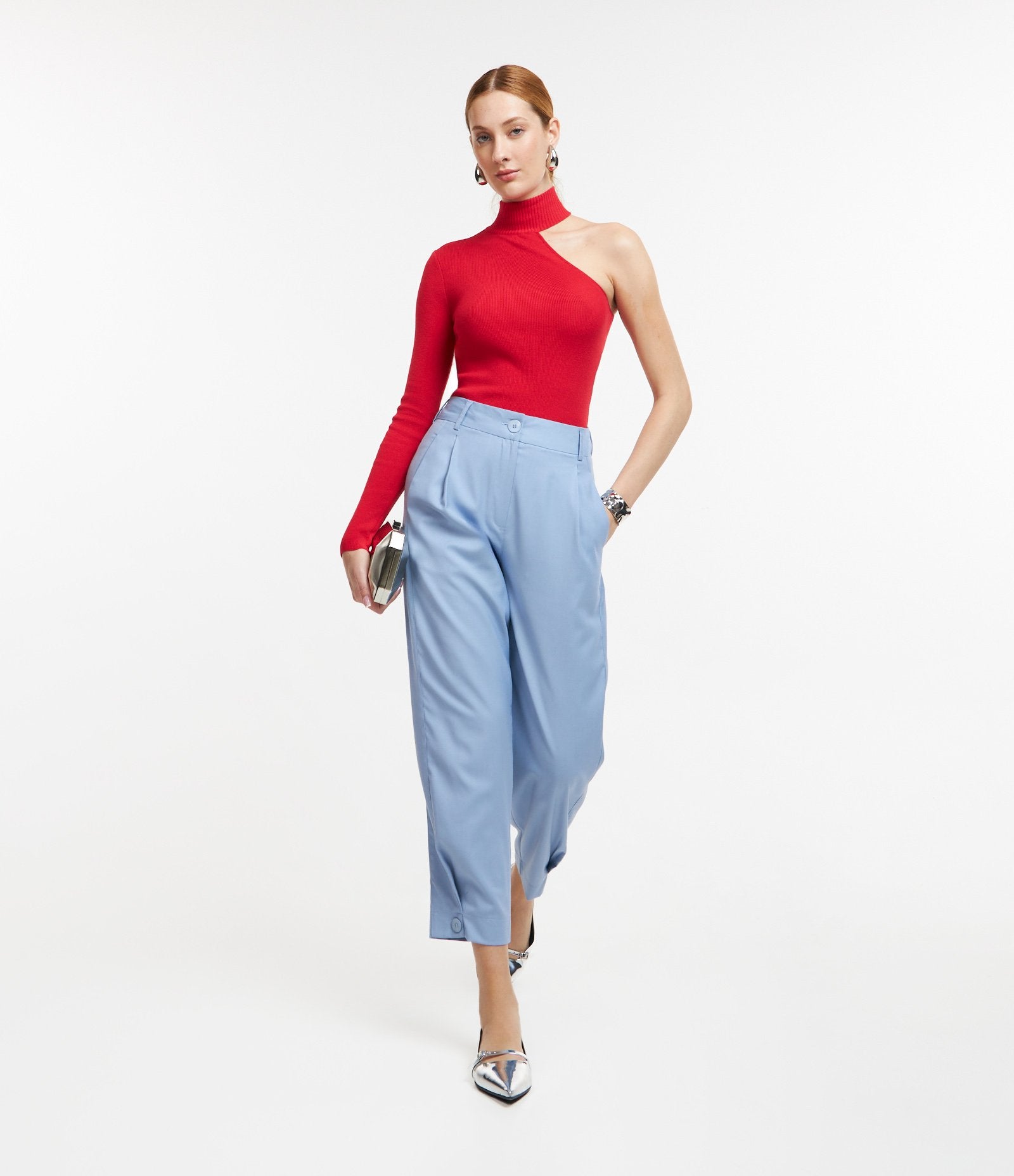 Calça de alfaiataria Carrot com pregas e detalhes na bainha em azul