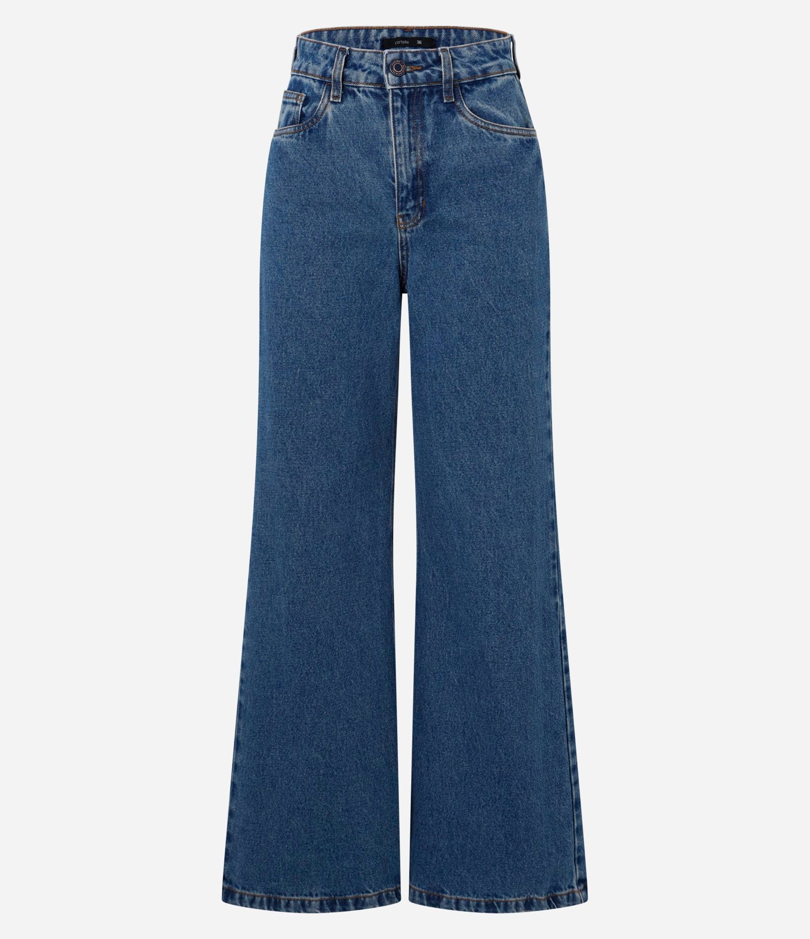 Calça jeans flare com cintura alta em azul da Cortelle - Experimente o conforto incomparável, a qualidade excepcional e o estilo atemporal em cada peça.
