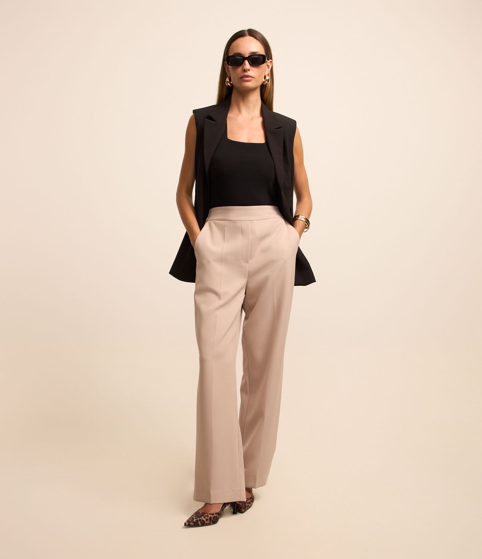 Calça larga de alfaiataria bege com cós elástico da Cortelle - Experimente a combinação perfeita de conforto, qualidade e estilo em cada peça.