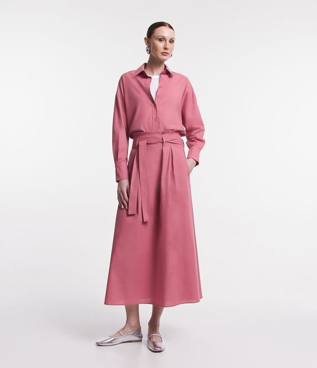 Saia Longa A-line em Tricoline Rosa com Laço e Pregas da Cortelle - Experimente a combinação perfeita de conforto, qualidade e estilo em cada peça.