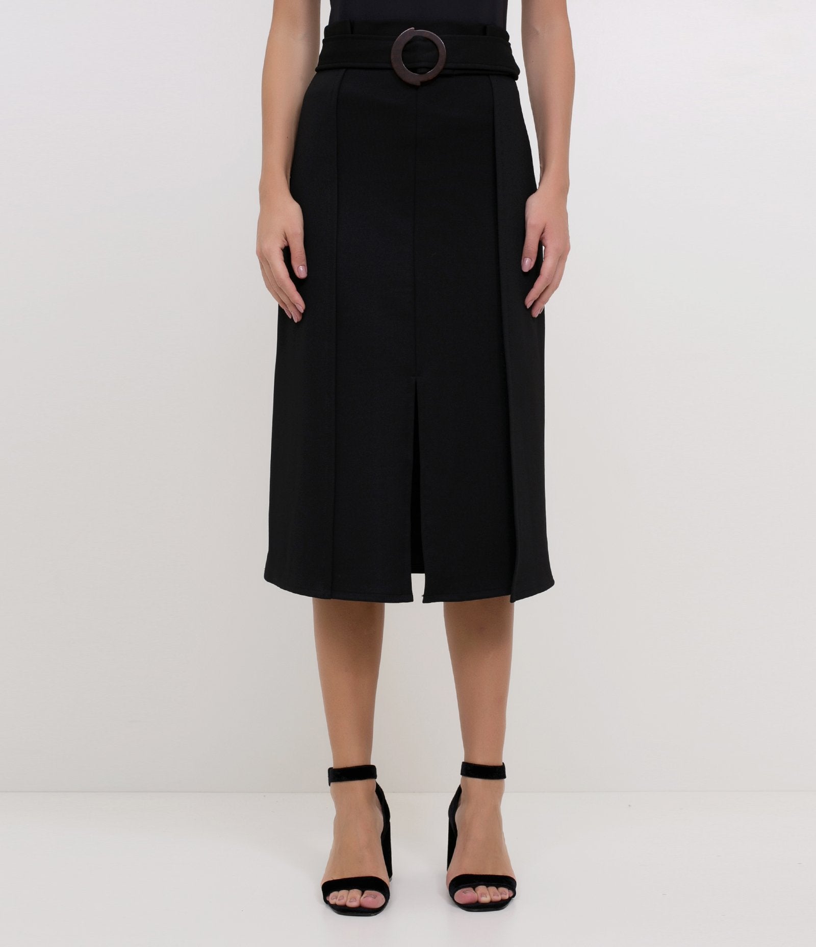 Saia Midi Clochard com Cinto Preto da Cortelle - Experimente o conforto, a qualidade e o estilo em cada peça.