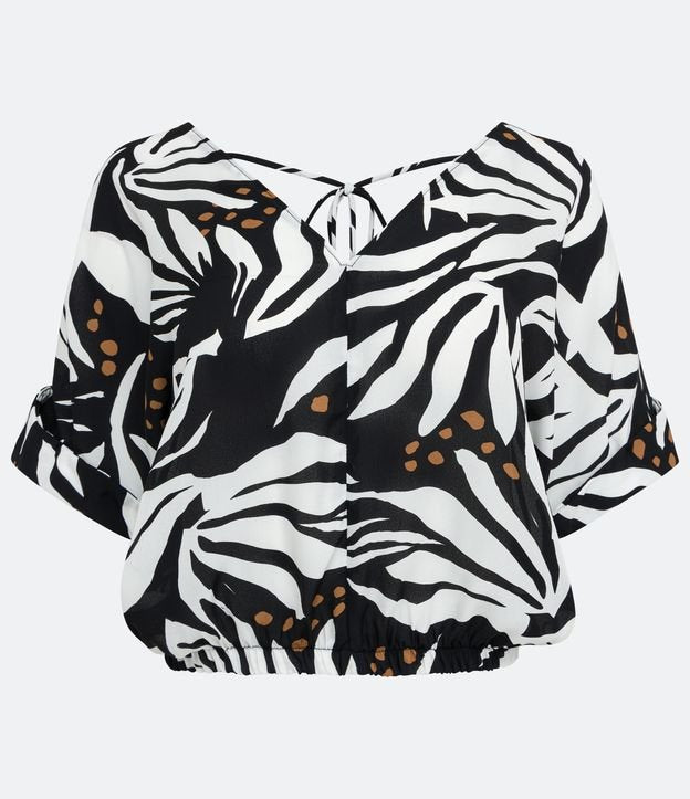 Blusa com decote em V e estampa de folhagem preta da Cortelle - Experimente a combinação perfeita de conforto, qualidade e estilo em cada peça.