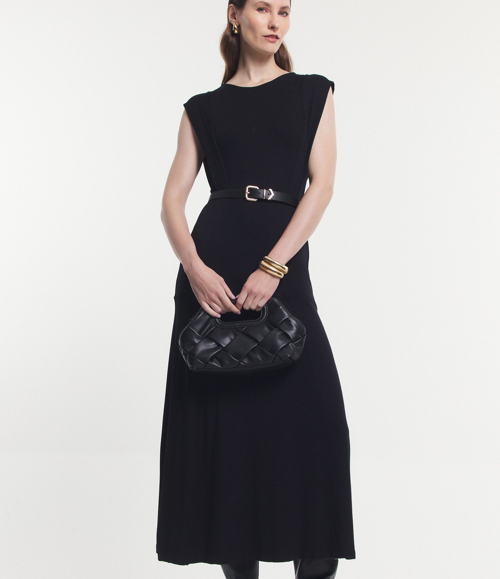 Vestido Midi Muscle Tee em malha de viscose preta da Cortelle - Experimente a combinação perfeita de conforto, qualidade e estilo em cada peça.