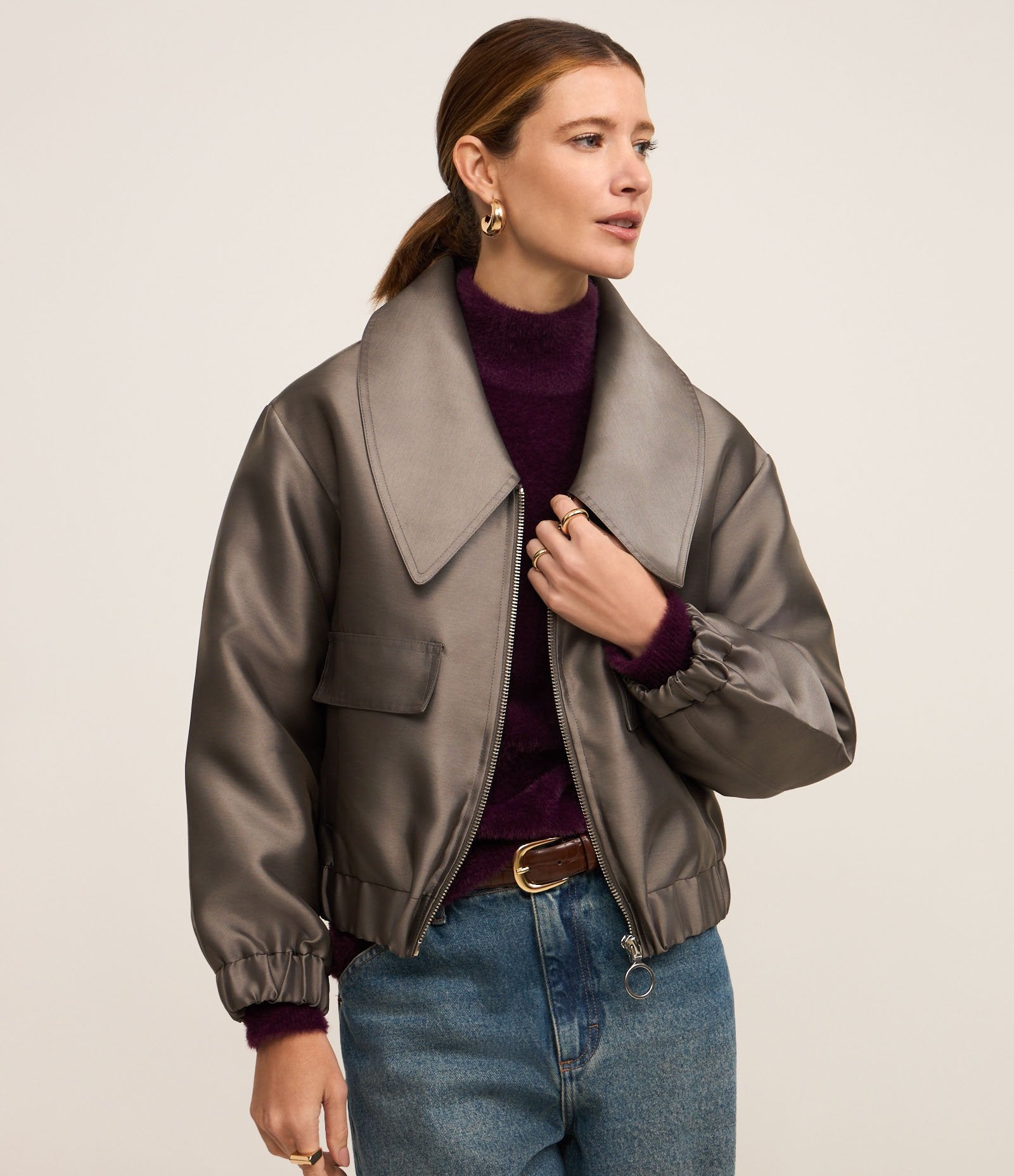 Jaqueta de Crepe com Lapela Robusta em Cinza