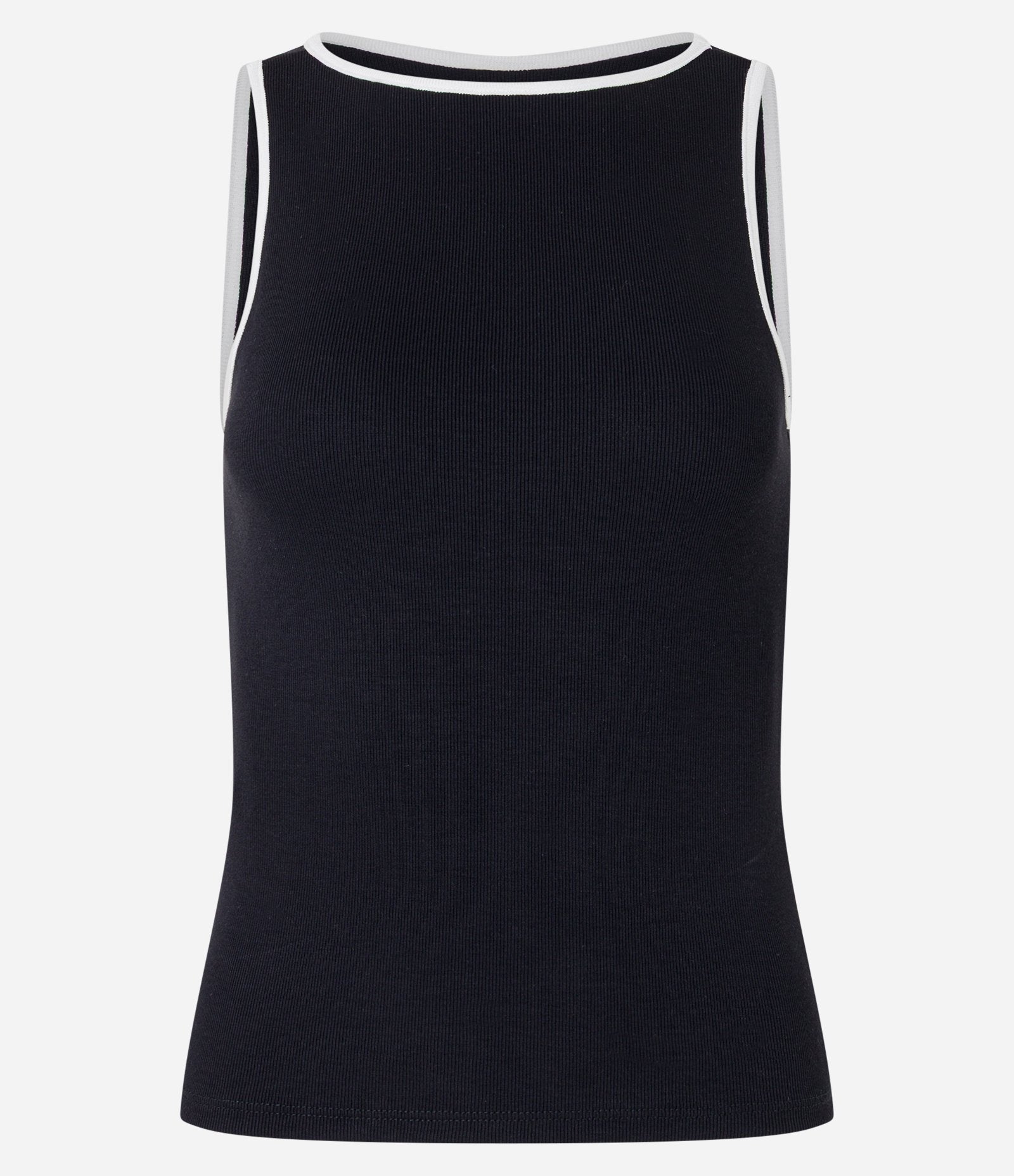Regata Canelada com Acabamento Preto Contrastante no Decote e nas Cavas