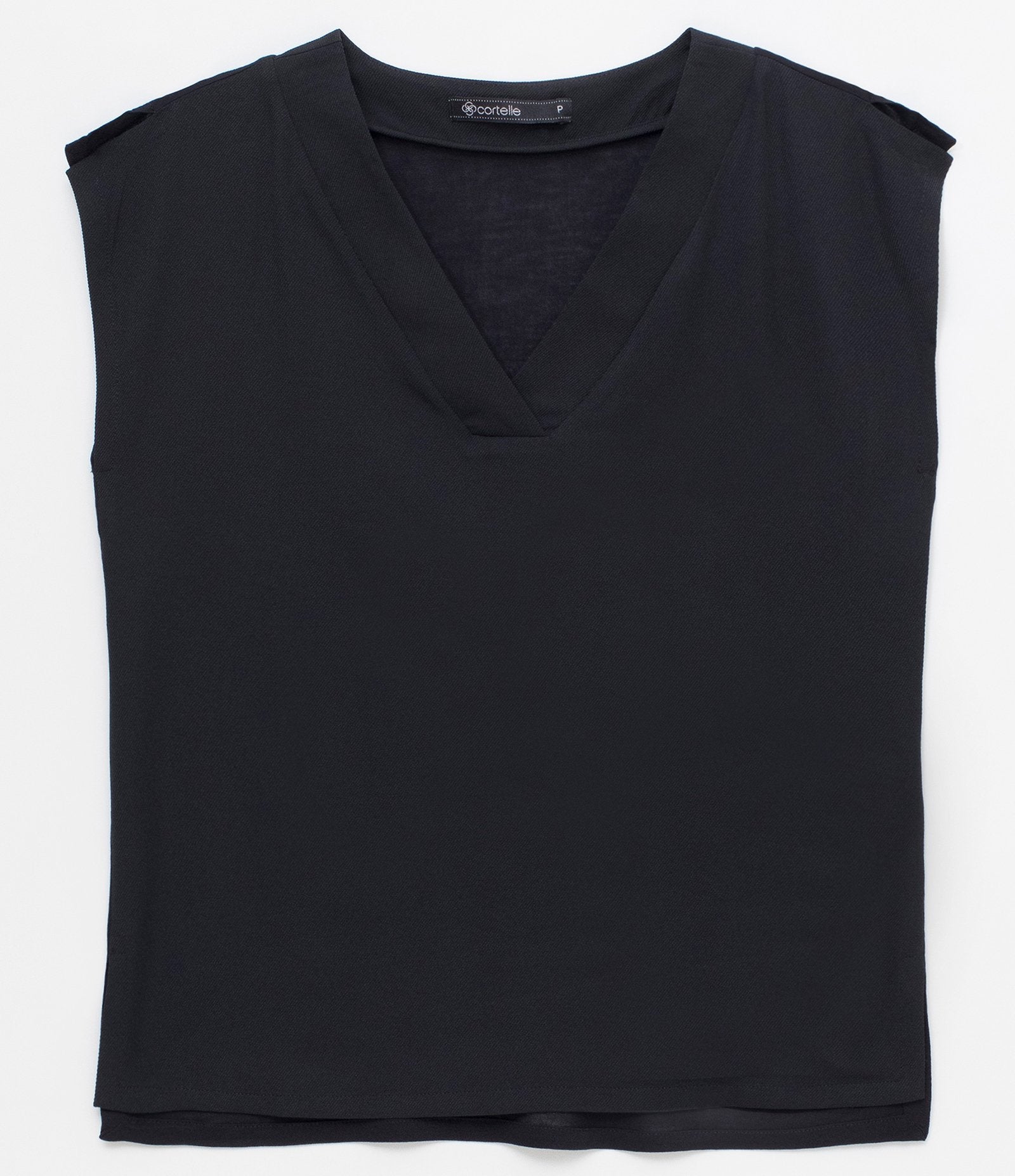 Você pode experimentar a combinação perfeita de estilo e conforto com este top da Cortelle. Um complemento essencial para o seu guarda-roupa do dia a dia.