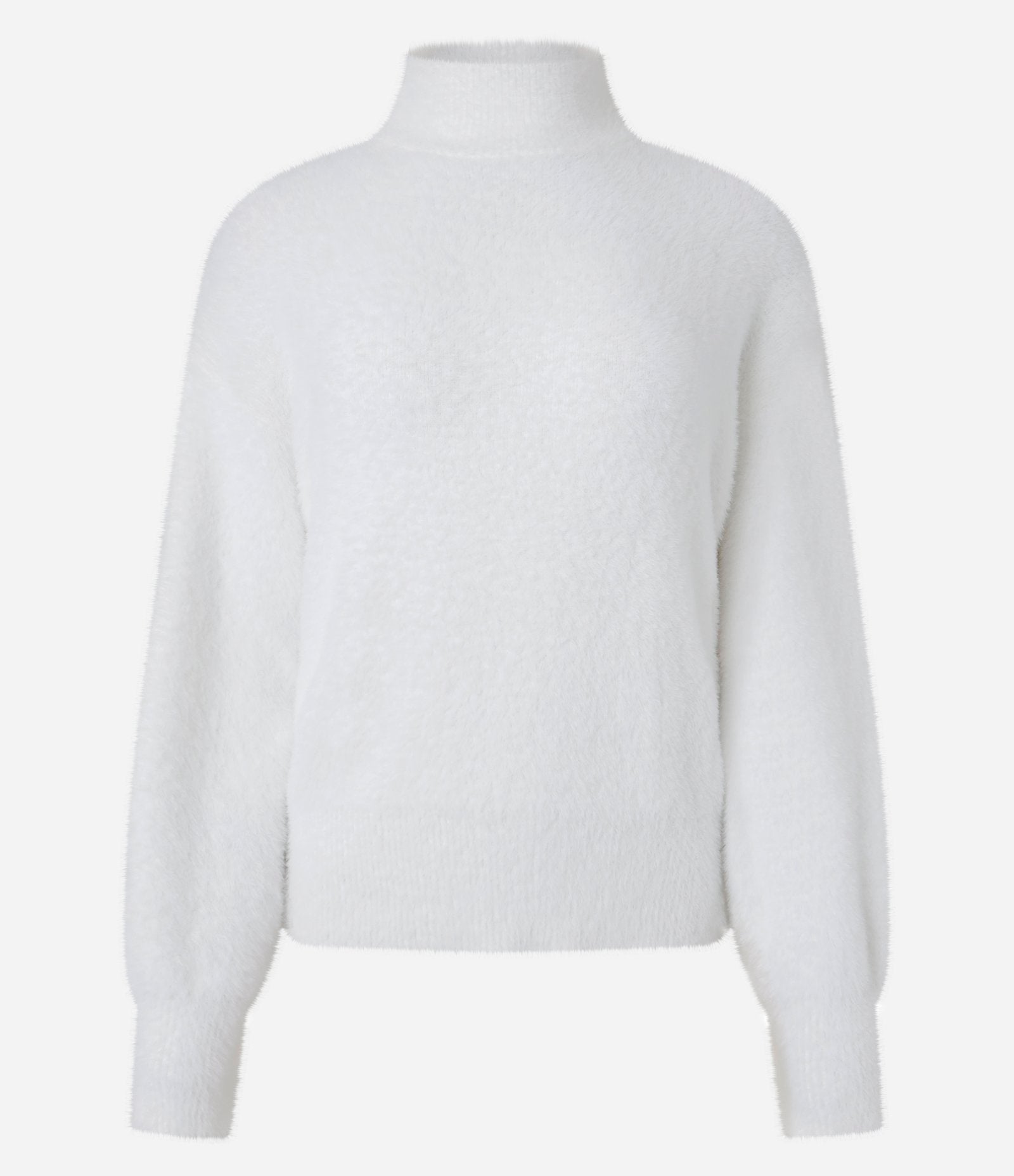 Suéter Branco de Gola Alta em Poliamida Felpuda