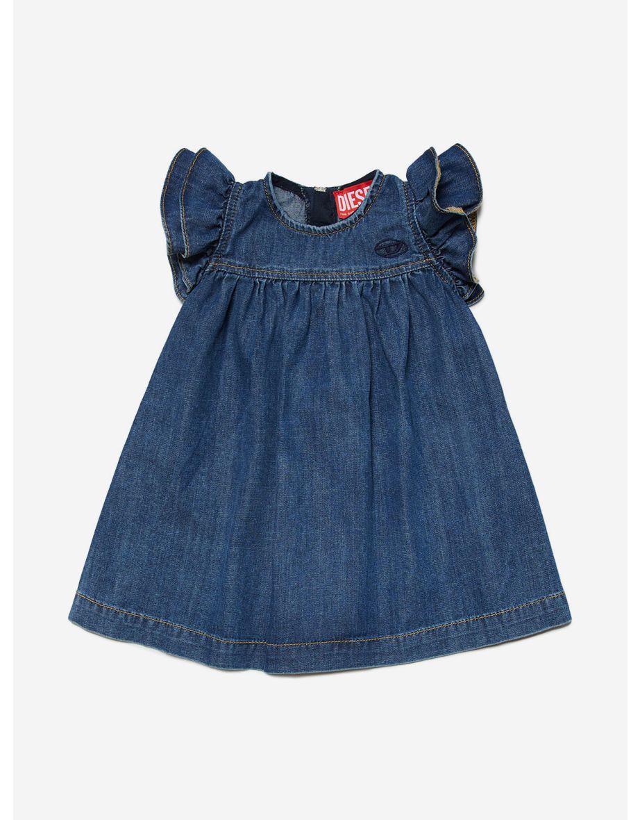 O Baby Girls Denim Smock Dress in Blue da Diesel é a escolha ideal para passeios casuais e uso diário.