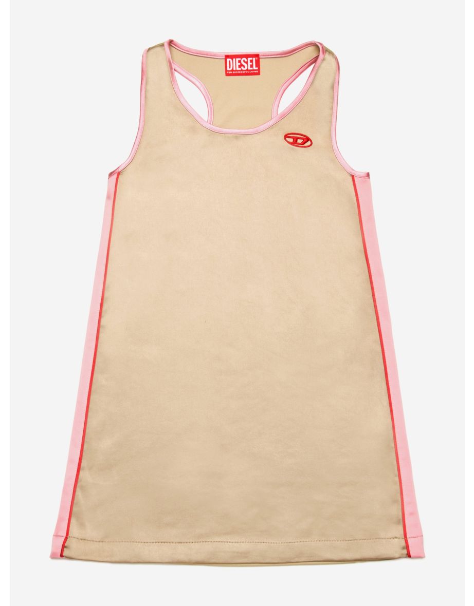 O vestido de cetim e jérsei sem mangas Girls' Satin and Jersey Dress in Beige da Diesel é a escolha ideal para passeios casuais e uso diário.