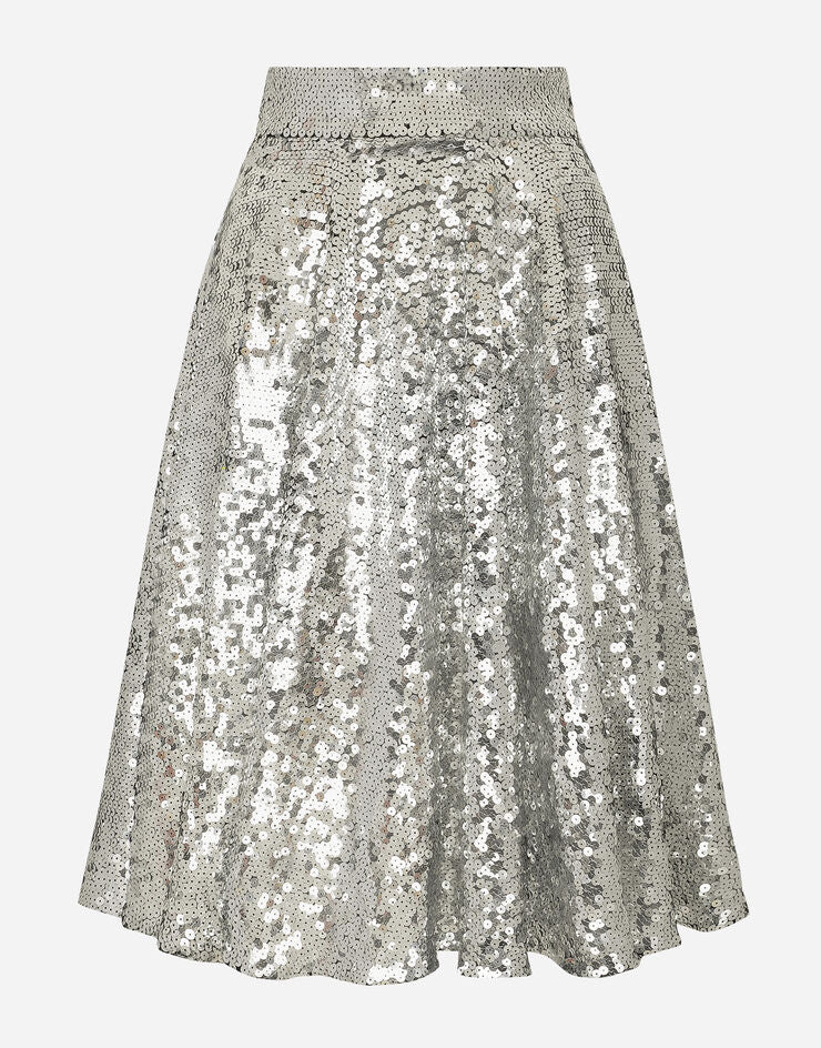 A saia midi circular com lantejoulas Dolce & Gabbana é a combinação perfeita de glamour e versatilidade, o que a torna uma peça essencial para looks de destaque e elegância cotidiana.