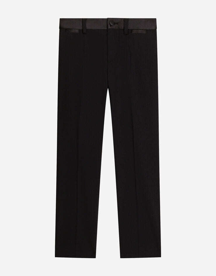 Essa calça clássica de lã com inserções de cetim duchesse da Dolce & Gabbana é a escolha perfeita para a elegância atemporal e a sofisticação do dia a dia.