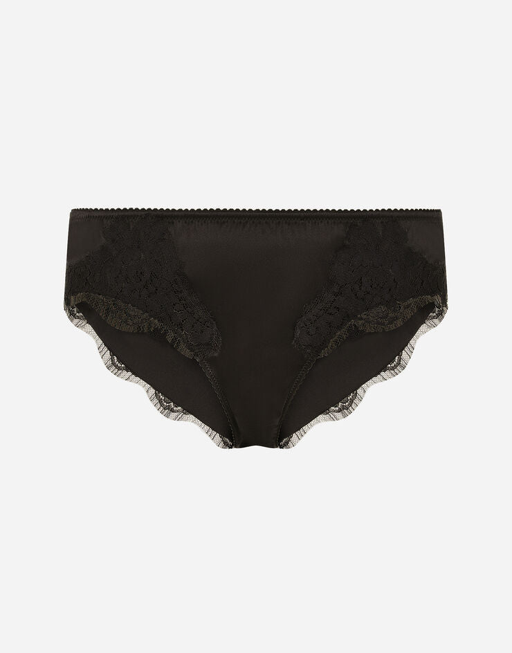 A cueca de cetim Dolce & Gabbana, adornada com delicados detalhes em renda, é a escolha perfeita para looks essenciais e elegância cotidiana.