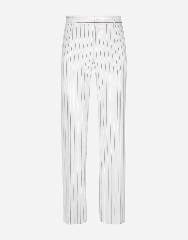 A calça listrada de perna reta Dolce & Gabbana é o complemento perfeito para o seu guarda-roupa, tanto para looks essenciais quanto para a elegância do dia a dia.