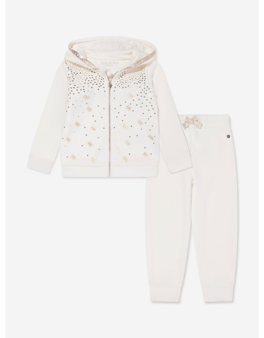 O Girls' Logo Tracksuit in Ivory da Guess é a combinação ideal de estilo e conforto, perfeito para reuniões sociais sofisticadas e para o uso diário.
