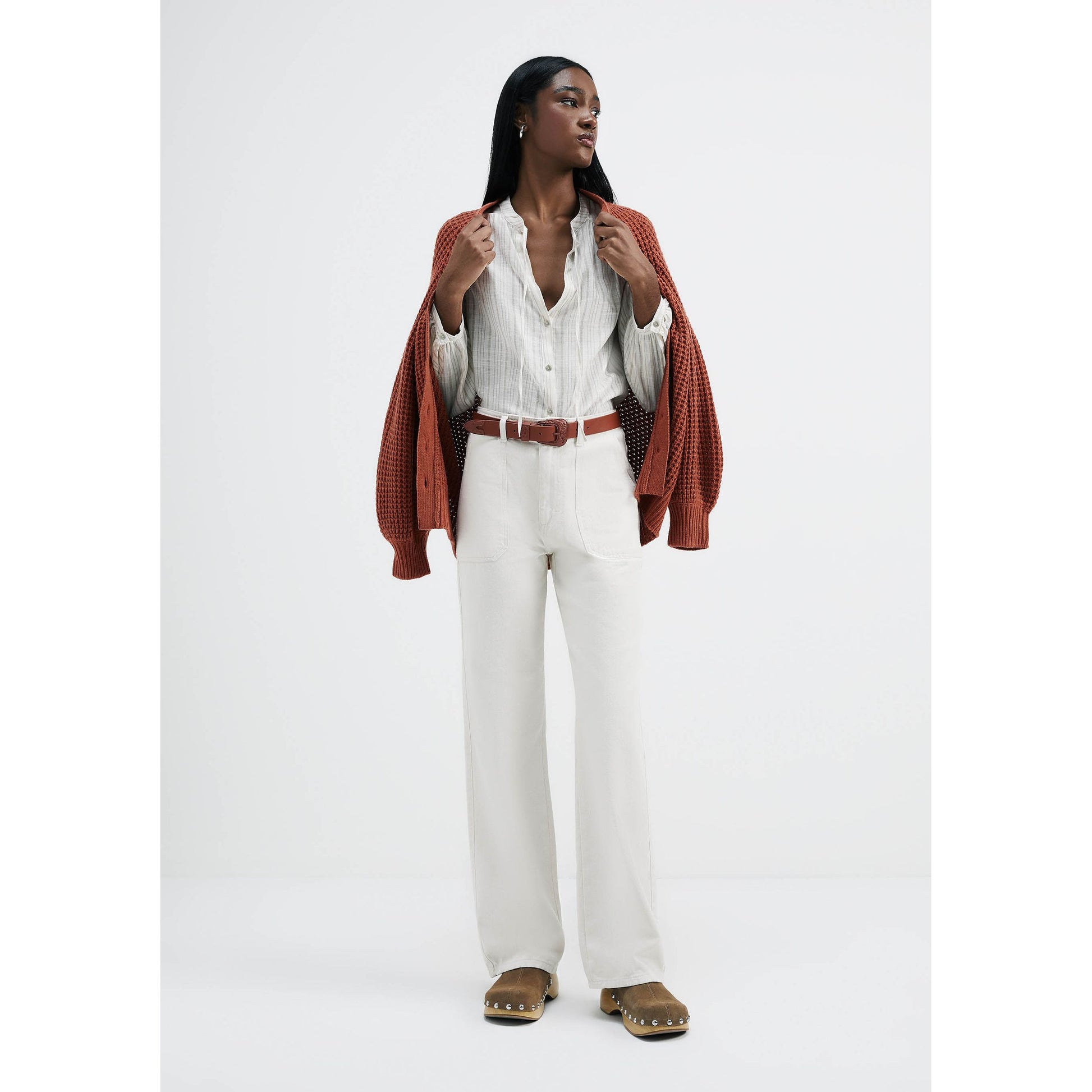 As calças femininas de sarja de cintura alta e pernas largas em off white da Hering são o complemento perfeito para o seu guarda-roupa para um estilo essencial e cotidiano. Confeccionada com acabamento tingido em tecido, essa calça oferece um visual chique e versátil que transita perfeitamente do dia para a noite.