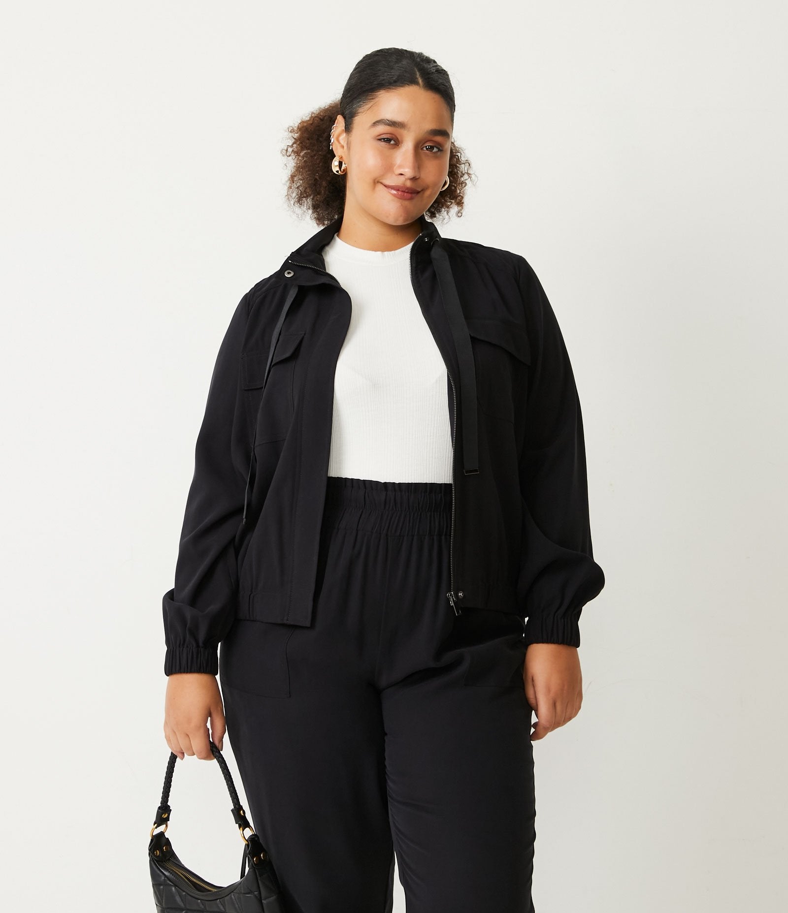Jaqueta bomber em viscose com detalhe de gravata - Curve & Plus Size - Preto
