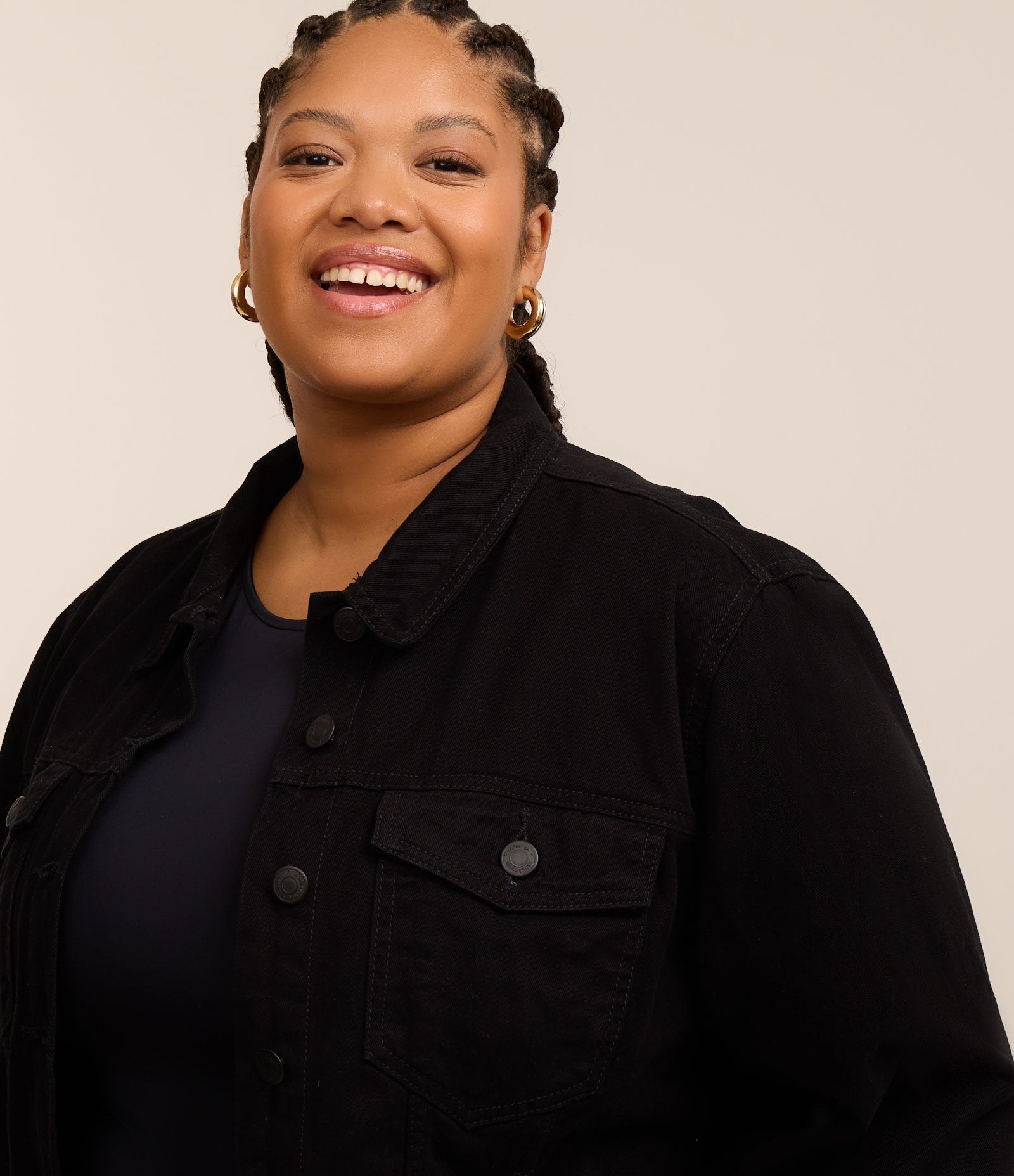 O Jaqueta Trucker Basic em sarja preta da Ashua Curve foi criado para celebrar as curvas com estilo e confiança. Ideal para qualquer ocasião, essa peça combina perfeitamente conforto e elegância em um design lisonjeiro.