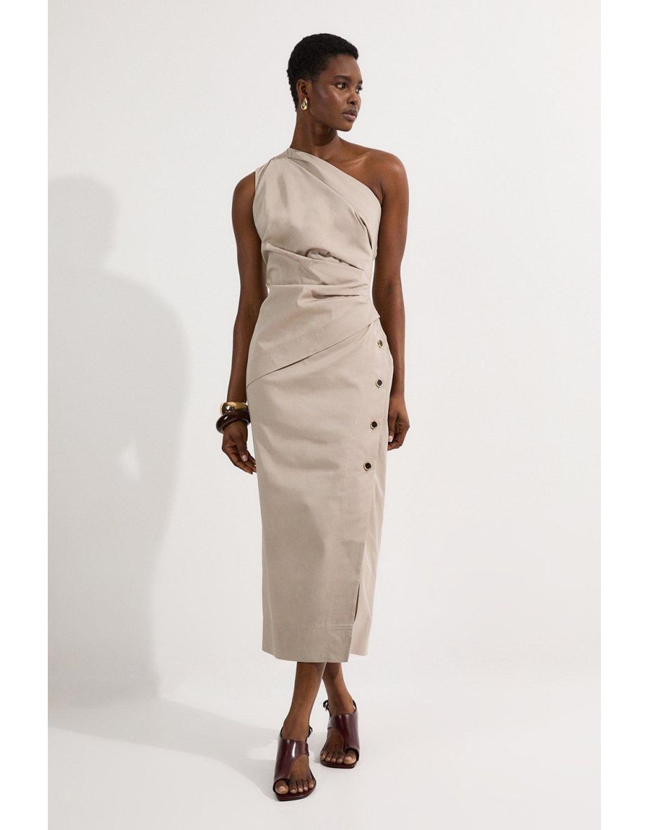 O Petite Tailored Polished Cotton Asymmetric Drape Pencil Dress de Karen Millen é a escolha ideal para a elegância chique do dia a dia.