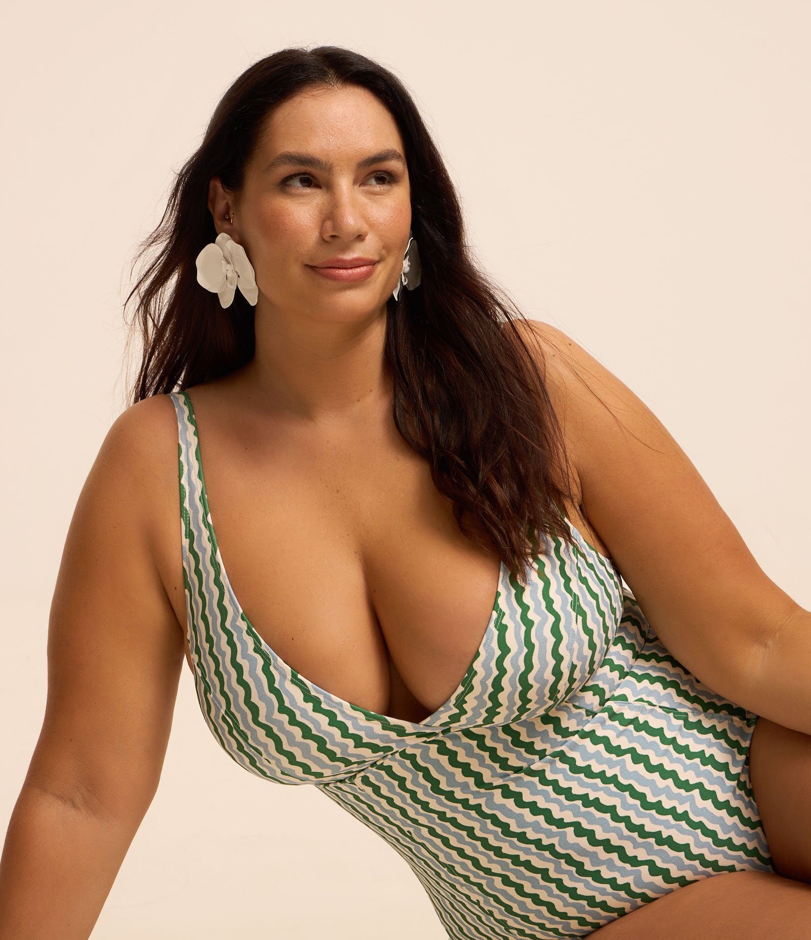 Maiô de microfibra sem enchimento Green Curve & Plus Size com estampa de ondas