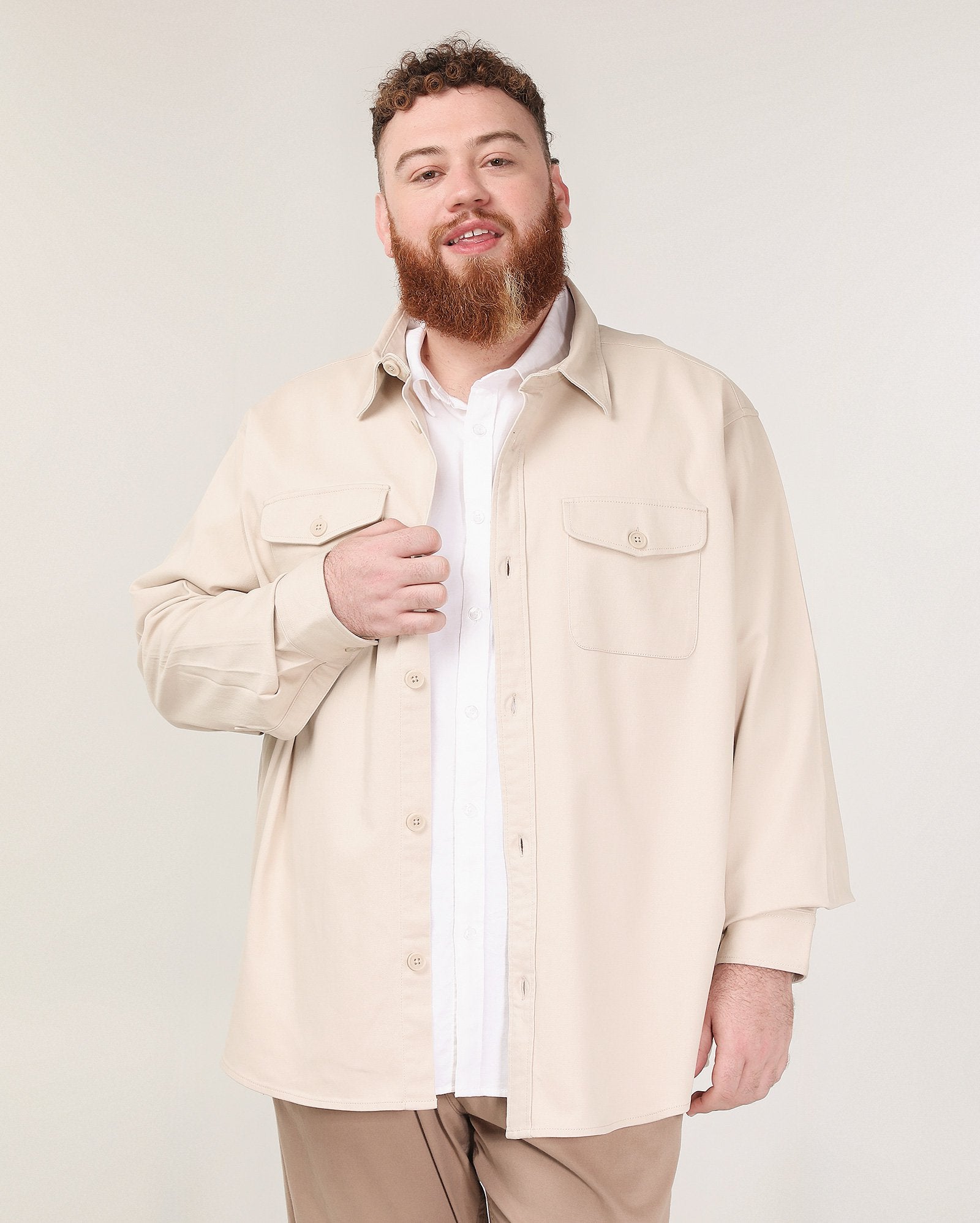 Camiseta masculina plus size bege com bolsos frontais | Original Plus by Riachuelo