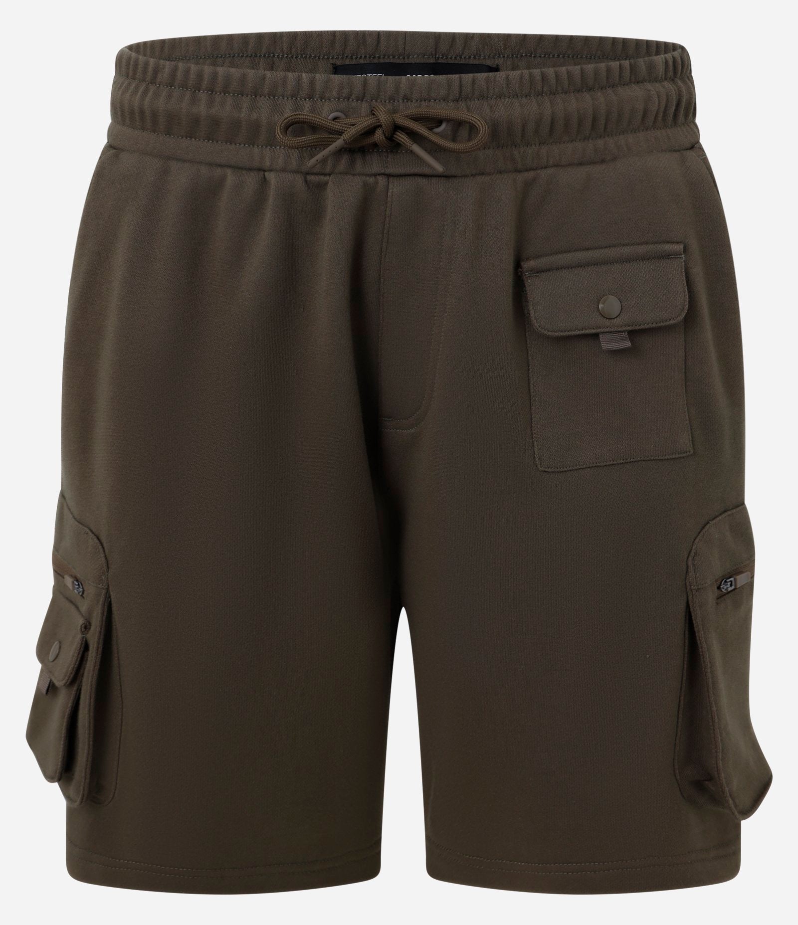 Calção de moletom Cargo marrom com amarração na cintura e bolsos táticos