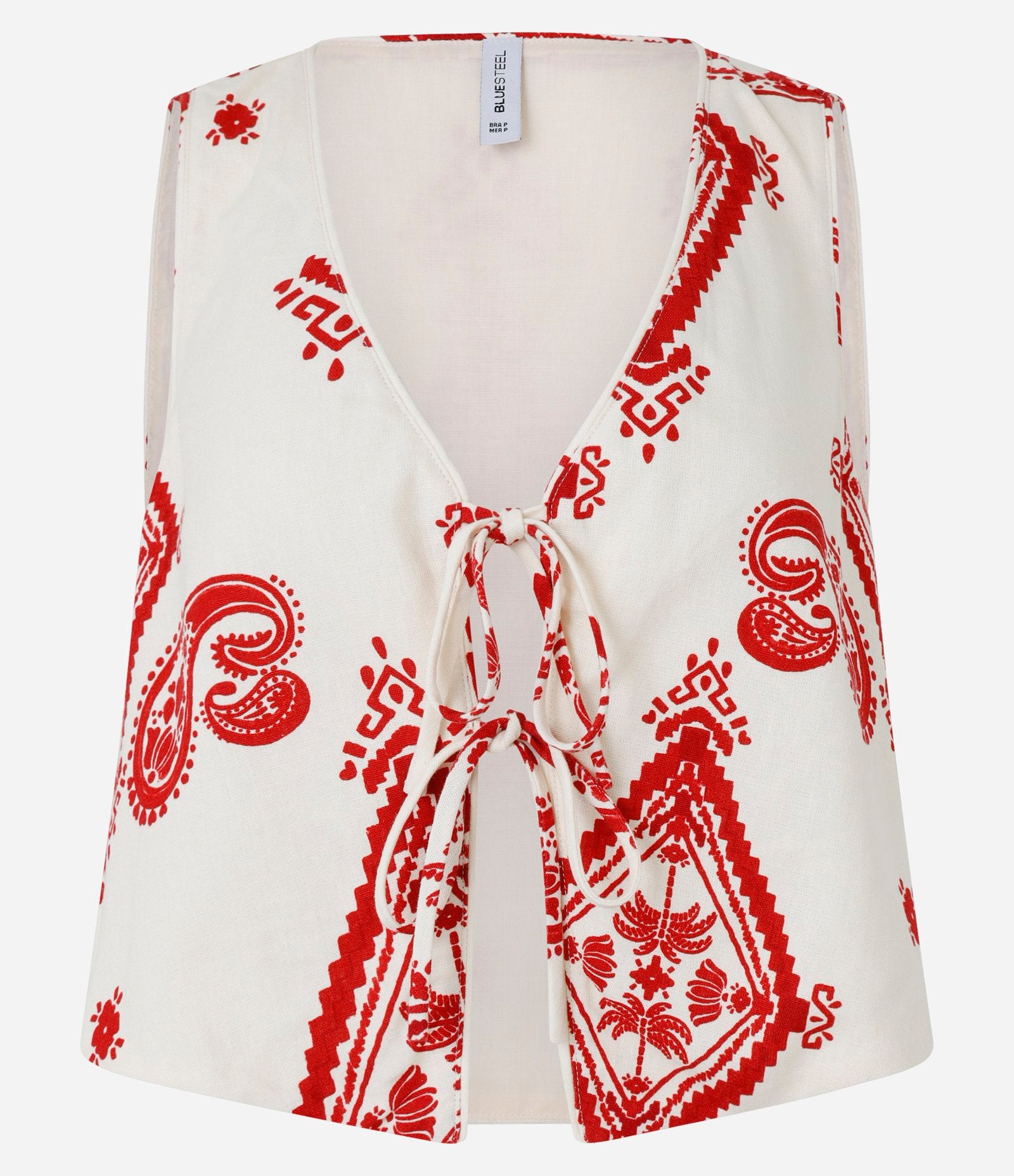 Blusa Cropped de Crepe com Amarração Frontal e Estampa Paisley