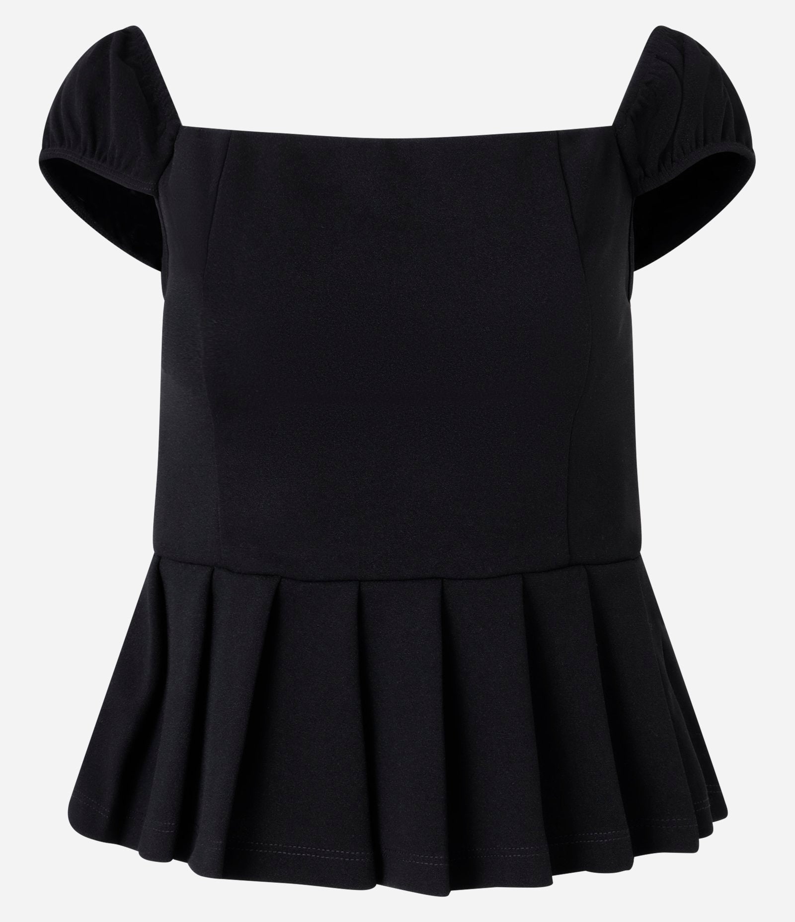 Blusa Curta de Crepe com Barra Plissada em Preto