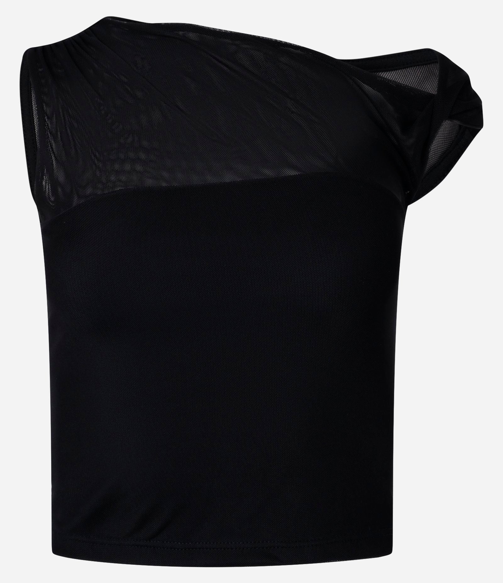 Blusa Preta de Tule com Detalhe Torcido no Ombro