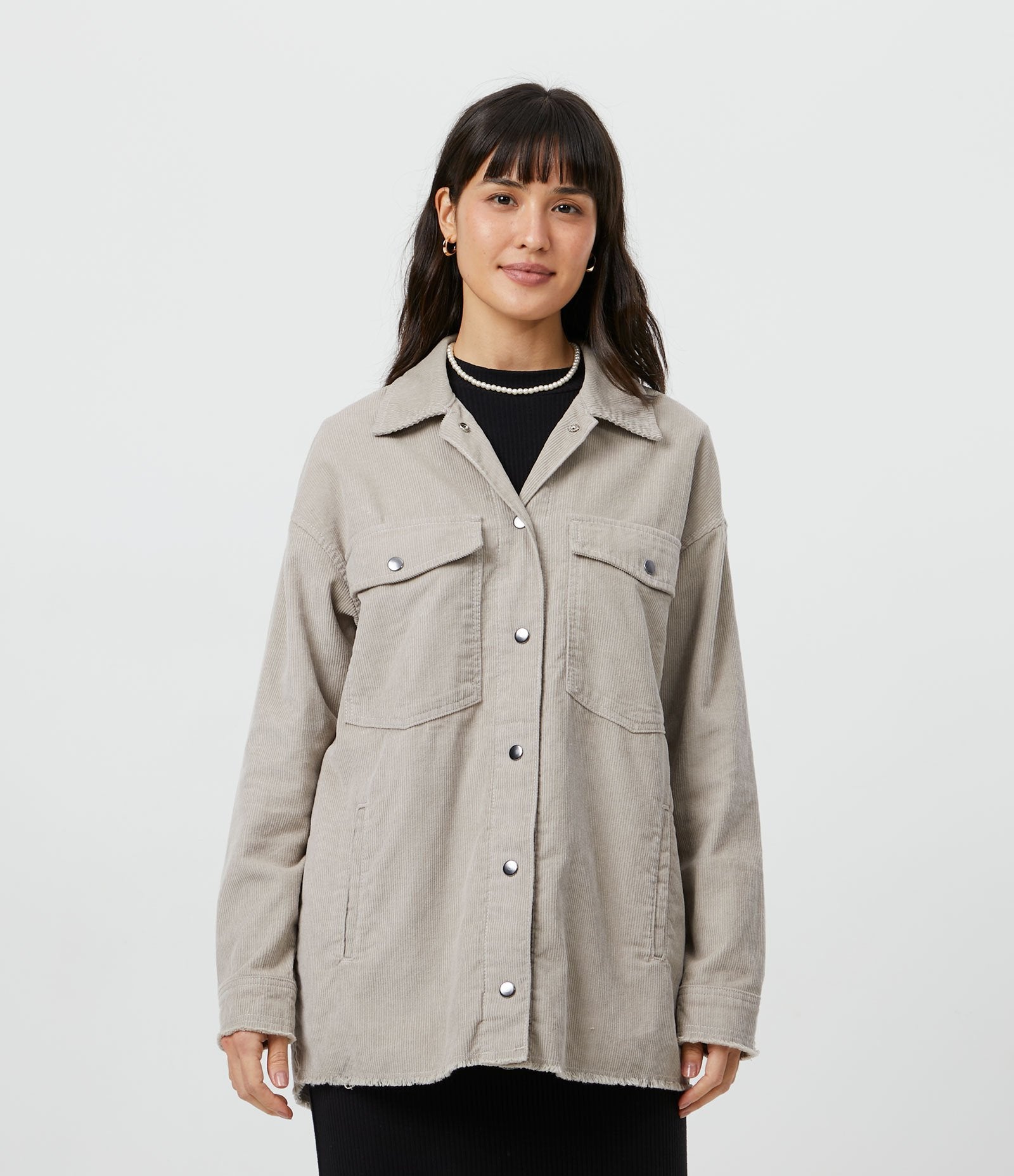 Camisa Estendida de Veludo Cotelê com Bolsos Cinza