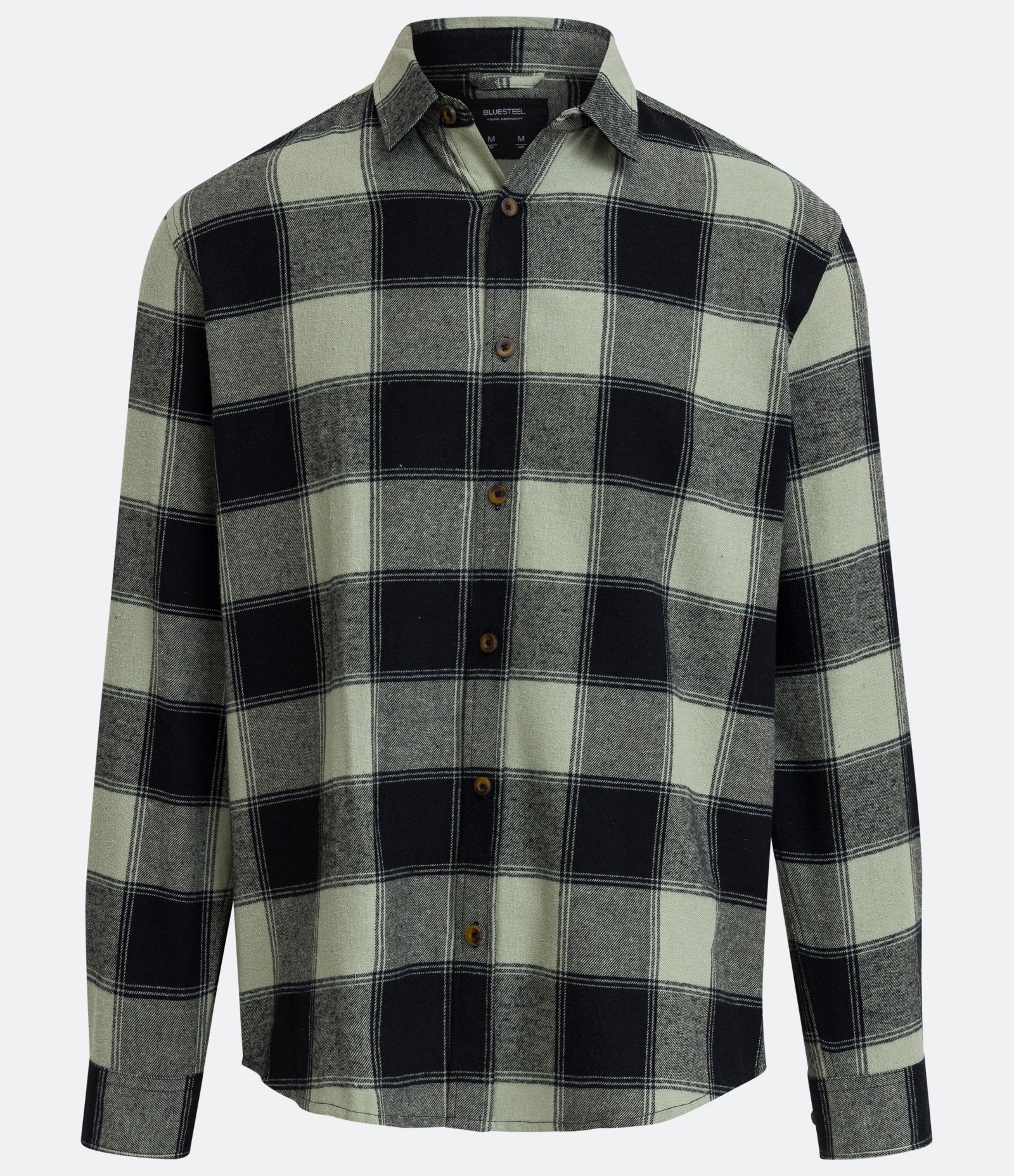 Camisa verde de manga longa em algodão xadrez de caimento regular